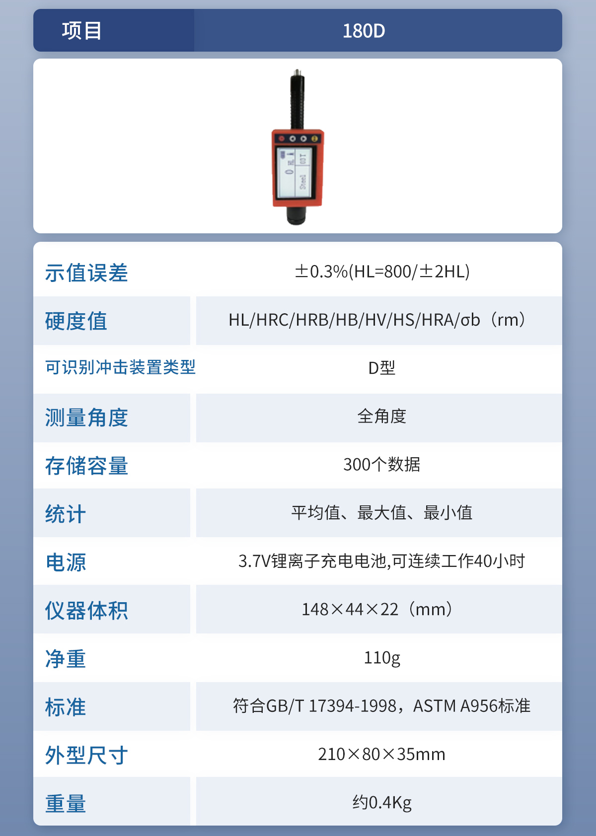 ● 設(shè)計(jì)依據(jù)標(biāo)準(zhǔn):《里氏硬度計(jì)技術(shù)條件》 JB/T 9378-2001;