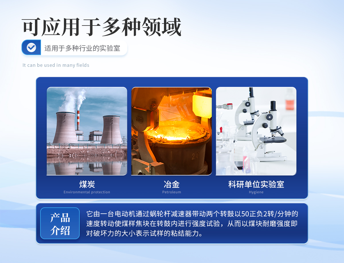 該儀器是測定煉焦用煤的粘結(jié)能力——羅加指數(shù)及粘結(jié)指數(shù)的專用儀器。適用于煤炭,冶金焦化部門及科研單位的實(shí)驗(yàn)室專用。它由一臺電動(dòng)機(jī)通過蝸輪桿減速器帶動(dòng)兩個(gè)轉(zhuǎn)鼓以50正負(fù)2轉(zhuǎn)/分鐘的速度轉(zhuǎn)動(dòng),使煤樣焦塊在轉(zhuǎn)鼓內(nèi)進(jìn)行強(qiáng)度試驗(yàn),從而以煤塊耐磨強(qiáng)度——即對破壞力的大小表示試樣的粘結(jié)能力。