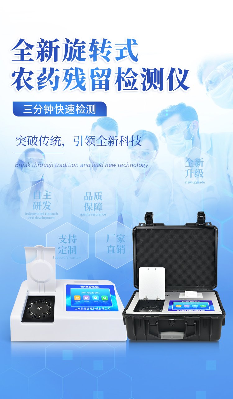 山東云唐智能科技有限公司生產(chǎn)的農(nóng)藥殘留檢測儀廣泛應(yīng)用于主要用于蔬菜、水果、茶葉、糧食、農(nóng)副產(chǎn)品等食品中農(nóng)藥殘留的快速檢測,依據(jù)國標(biāo)GB/T5009.199-2003進行檢測,適用于果蔬茶生產(chǎn)基地以及農(nóng)貿(mào)批發(fā)銷售市場現(xiàn)場檢測,餐館、學(xué)校、食堂、家庭果蔬加工前的安全速測等。