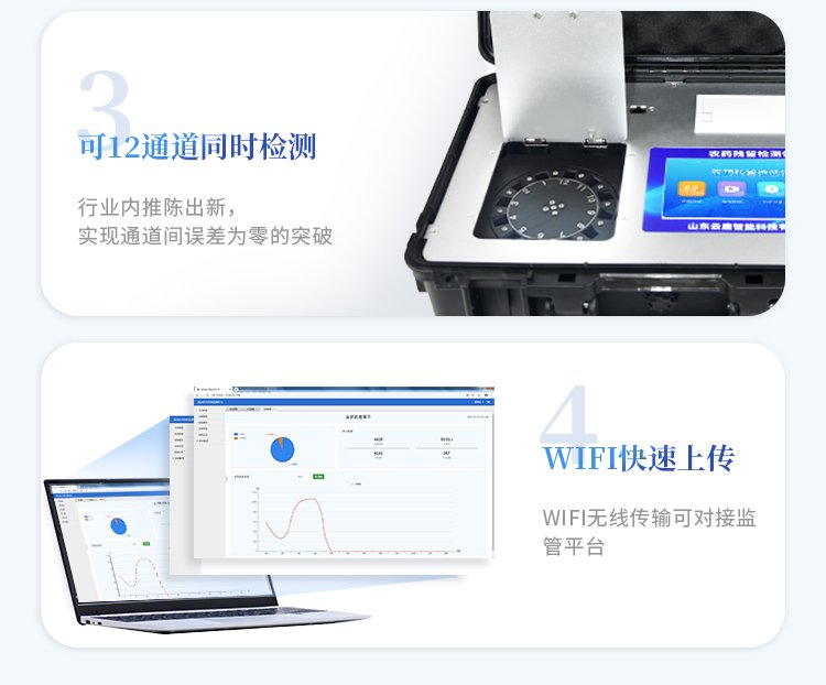 | 安卓智能操作系統(tǒng),采用更加**和人性化操作,儀器具有無線聯(lián)網(wǎng)上傳功能,快速上傳數(shù)據(jù),進行數(shù)據(jù)統(tǒng)計和分析。 | 智能化程度高,儀器具有自檢功能:具有開機自檢和調(diào)零功能,具有自動檢測重復(fù)性功能;同時,檢測完成可自動打印檢測報告和二維碼。手機掃碼可顯示出詳細檢測信息。 | 儀器帶有監(jiān)管平臺,數(shù)據(jù)可局域網(wǎng)和互聯(lián)網(wǎng)數(shù)據(jù)上傳,檢測結(jié)果直接傳至食品安全監(jiān)管平臺。進行區(qū)域食品安全監(jiān)管及大數(shù)據(jù)分析處理與數(shù)據(jù)統(tǒng)計,檢測區(qū)域食品安全長短期動態(tài),達到食品安全問題預(yù)估、預(yù)警 。 | 樣品處理簡單省力,整體操作快速、安全、便捷。 | 儀器具有自身保護功能,可設(shè)置用戶名及密碼,防止非工作人員操作等。 | 內(nèi)置強大的數(shù)據(jù)庫,可在儀器上直接選擇樣品名稱、檢測指標(biāo)、送檢單位等信息,也可在儀器上直接編輯錄入樣品名稱、檢測指標(biāo)、送檢單位等信息并保存進樣品數(shù)據(jù)庫,方便后期操作調(diào)取使用。 | 儀器具有重新校準、鎖定、恢復(fù)出廠設(shè)置功能。 |