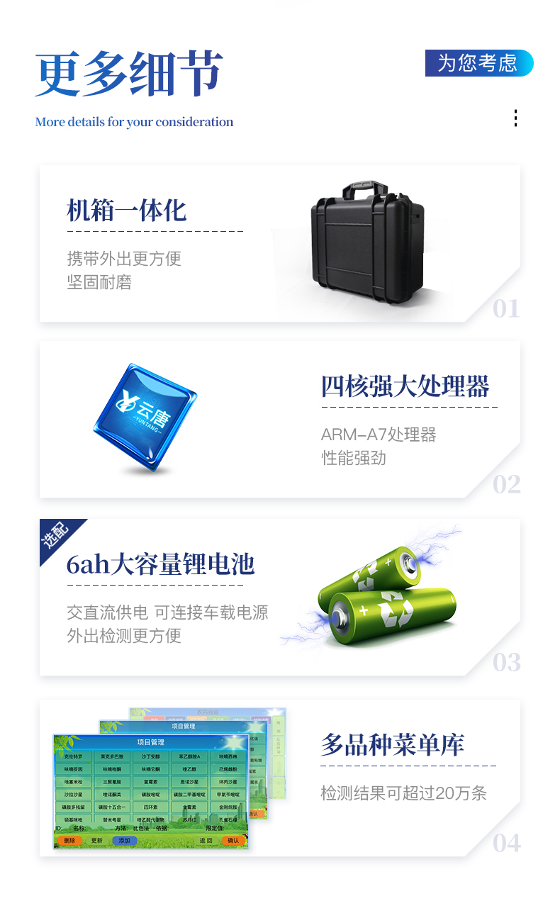 廣泛應用于主要用于蔬菜、水果、茶葉、糧食、農(nóng)副產(chǎn)品等食品中有機磷和氨基甲酸酯類農(nóng)藥殘留的快速檢測;此外還可用于果蔬茶生產(chǎn)基地和農(nóng)貿(mào)批發(fā)銷售市場現(xiàn)場檢測,餐館、學校、食堂、家庭果蔬加工前的安全速測等。