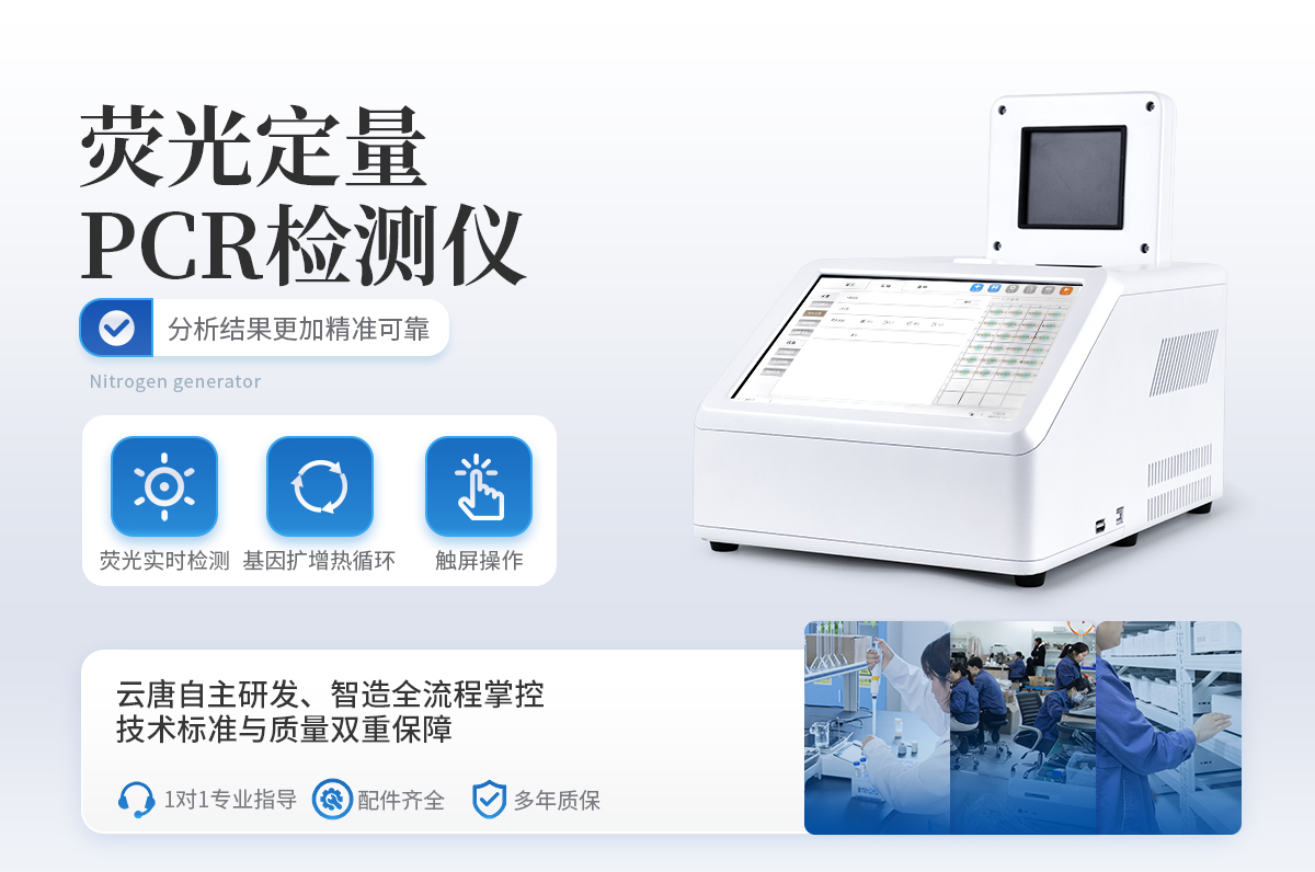 YT-P08型號 實時熒光定量PCR儀器的原理:聚合酶鏈式反應(polymerase chain reaction,PCR)是一種用于放大擴增特定的DNA片段的分子生物學技術,它可看作是生物體外的特殊DNA擴增,由高溫變性、低溫退火及適溫延伸等幾步反應組成一個溫度循環(huán)周期,使目的基因得以迅速擴增,具有特異性強、靈敏度高、操作簡便、省時等特點,是基因擴增技術的一次重大革新。PCR技術可將極微量的目標DNA特異地擴增上百萬倍,從而大大提高對DNA分子的分析和檢測能力。