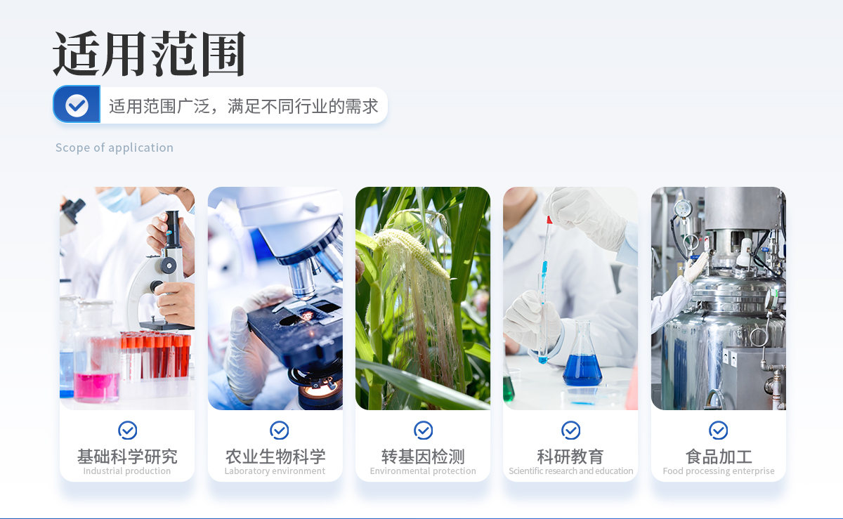□ 基礎科學研究 □ 病原體檢測 □ 動物疫情檢測 □ 肉制品摻假 □ 轉基因檢測 □ 食品衛(wèi)生檢疫 □ 藥物開發(fā)及合理用藥 □ 基因表達 □ 水體監(jiān)測