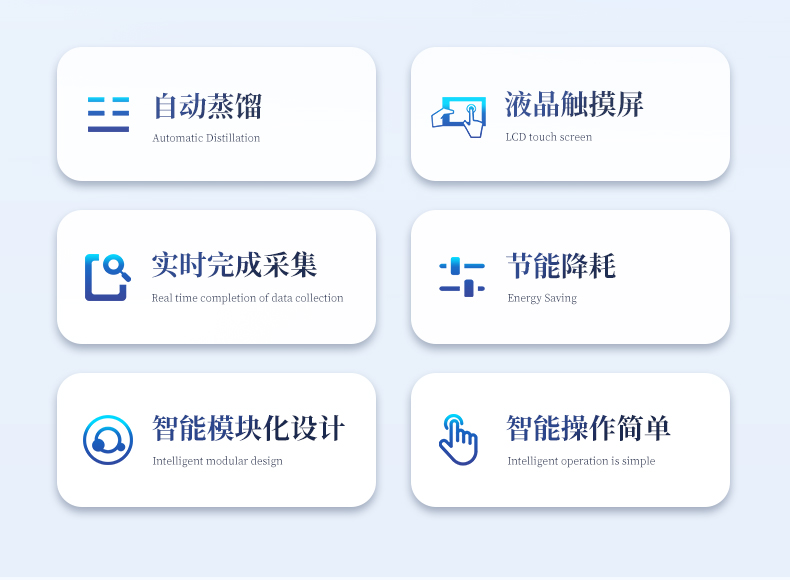| 1.自動(dòng)化程度高:內(nèi)置冷卻水循環(huán)機(jī),實(shí)現(xiàn)全自動(dòng)化操作,提高實(shí)驗(yàn)效率與準(zhǔn)確性。 | 2.多通道獨(dú)立控制:3個(gè)加熱單元各自獨(dú)立,配備防倒吸、防過(guò)量蒸餾及防干燒保護(hù)。 | 3.智能觸控:7寸液晶觸摸屏,支持自定義保存*多1000種蒸餾方法,內(nèi)置18種國(guó)標(biāo)方法。 | 4.精準(zhǔn)控制:采用**陶瓷遠(yuǎn)紅外加熱,具備時(shí)間與重量雙重終點(diǎn)控制,確保蒸餾精度達(dá)0.1ml。 | 5.安全可靠:集成自動(dòng)清洗、自動(dòng)氣密檢查、反吹等功能,確保設(shè)備長(zhǎng)期穩(wěn)定運(yùn)行。 | 6.操作簡(jiǎn)便:一鍵啟動(dòng),支持遠(yuǎn)程OTA系統(tǒng)升級(jí),滿足不同用戶的使用需求。 |