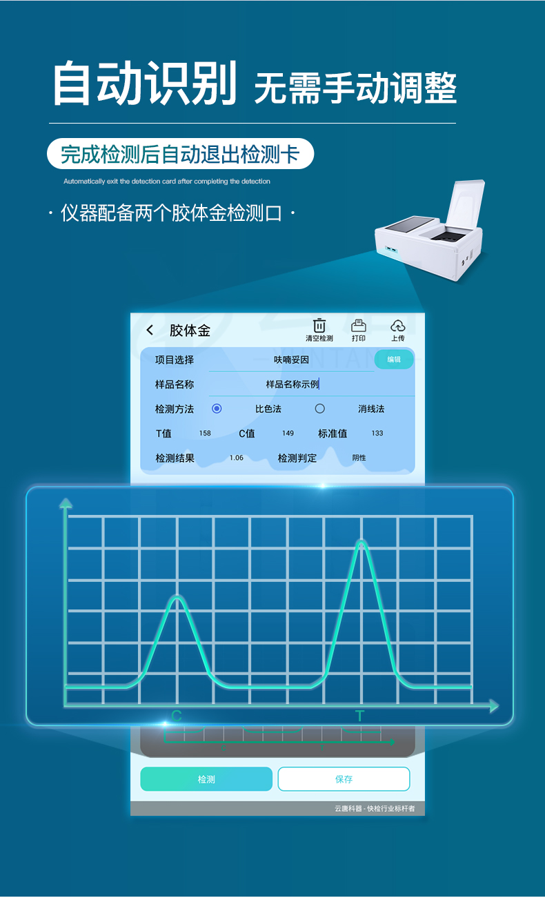11.5、曲線形式:直插式掃描方式,顯示金標(biāo)卡圖像,實(shí)時(shí)生成、識別CT曲線圖,無需手動(dòng)調(diào)整,完成檢測后自動(dòng)退出檢測卡。兼容市場上其他金標(biāo)卡,使用耗材不受限制。