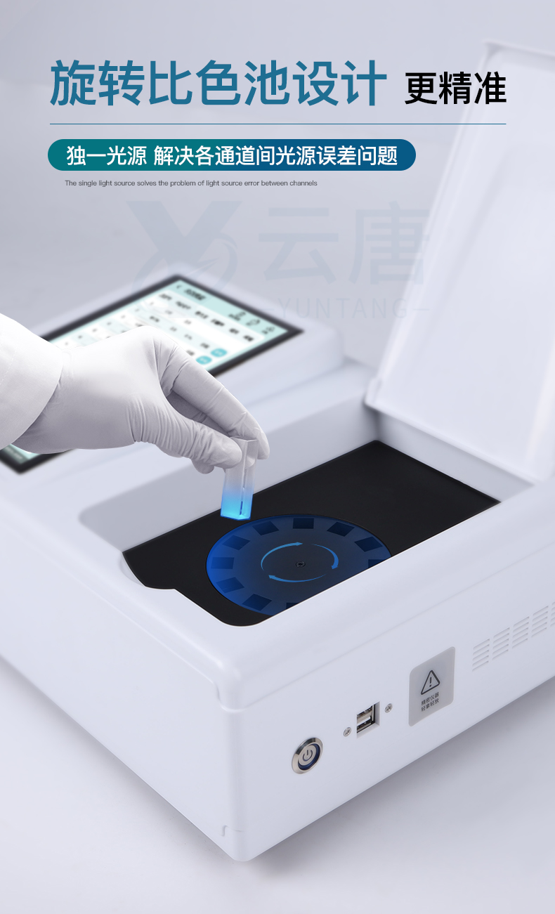 4、檢測通道:≥12通道;采用精密旋轉(zhuǎn)比色池設(shè)計(jì),使用同芯片同光源校準(zhǔn)精度,解決不同光源之間的誤差值,更加準(zhǔn)確**。(1-12通道間誤差0.1%,***:**202022821055.2)
