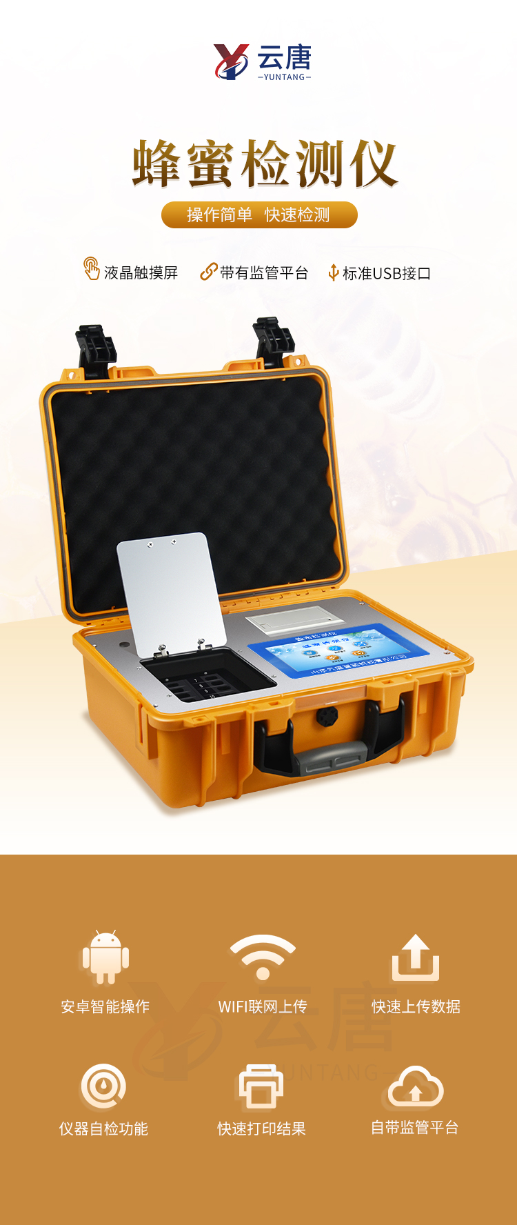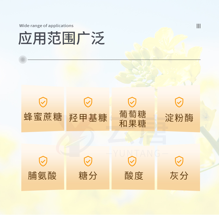 檢測(cè)項(xiàng)目:蜂蜜蔗糖、蜂蜜還原糖(葡萄糖和果糖)、蜂蜜羥甲基糠醛、蜂蜜酸度、蜂蜜中農(nóng)藥殘留、蜂蜜淀粉酶值、蜂蜜中脯氨酸、蜂蜜水分、蜂蜜糖分、蜂蜜中灰分,應(yīng)用范圍:應(yīng)用于現(xiàn)場(chǎng)檢測(cè)蜂蜜蔗糖、葡萄糖和果糖、羥甲基糠醛、酸度、農(nóng)殘、淀粉酶、脯氨酸、水分、糖分、灰分含量的蜂蜜快速檢測(cè)儀,可廣泛應(yīng)用于各類(lèi)蜂蜜品質(zhì)的快速定量檢測(cè)。