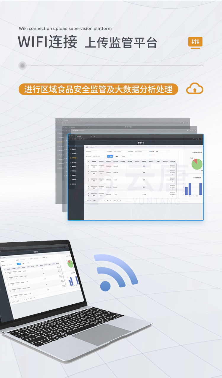 8、儀器帶有監(jiān)管平臺(tái)。數(shù)據(jù)可局域網(wǎng)和互聯(lián)網(wǎng)數(shù)據(jù)上傳,檢測(cè)結(jié)果直接傳至食品安全監(jiān)管平臺(tái)。進(jìn)行區(qū)域食品安全監(jiān)管及大數(shù)據(jù)分析處理,檢測(cè)區(qū)域食品安全長(zhǎng)短期動(dòng)態(tài),達(dá)到食品安全問(wèn)題預(yù)估、預(yù)警。