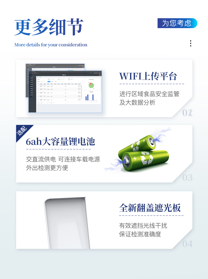 ⑦ 該儀器模塊化高度集成,同步設(shè)有數(shù)字化管理模塊、無(wú)線通訊模塊,可將檢測(cè)結(jié)果進(jìn)行分析,直接上傳至數(shù)據(jù)平臺(tái),實(shí)現(xiàn)數(shù)據(jù)共享,方便后期進(jìn)行數(shù)據(jù)分析與統(tǒng)計(jì)。