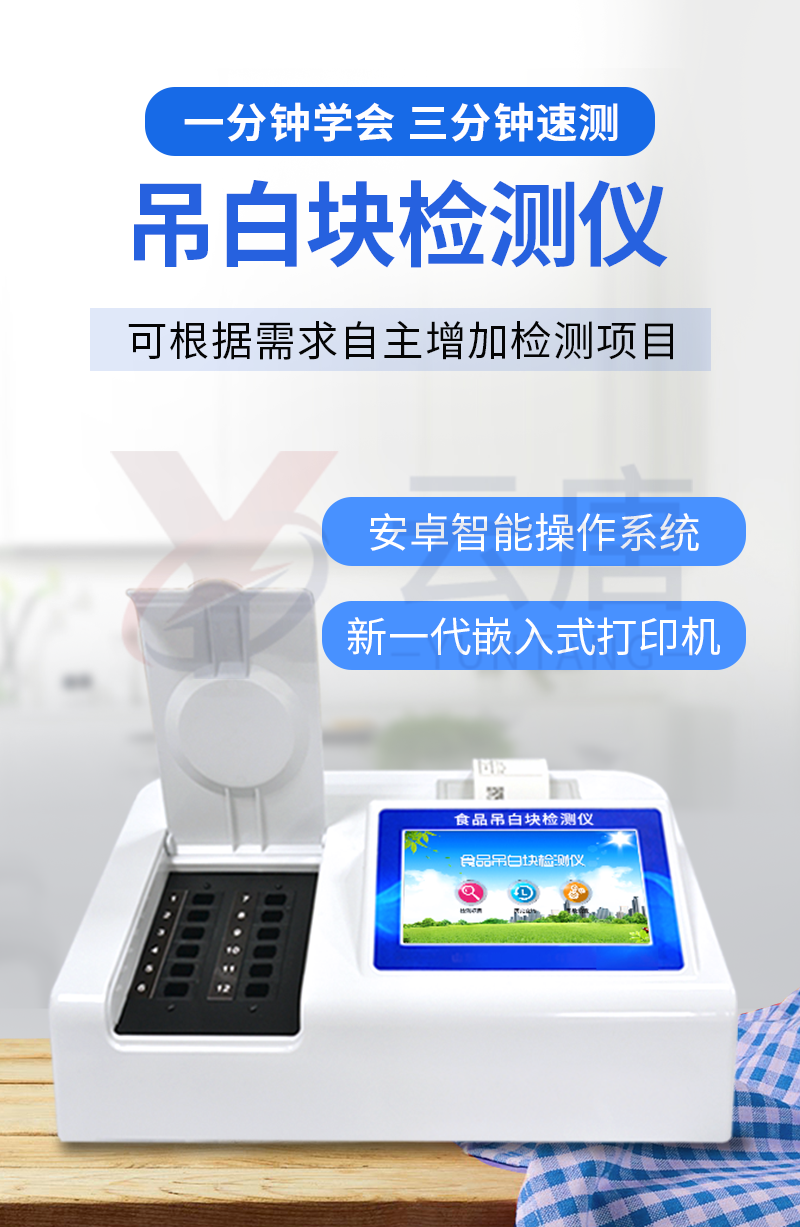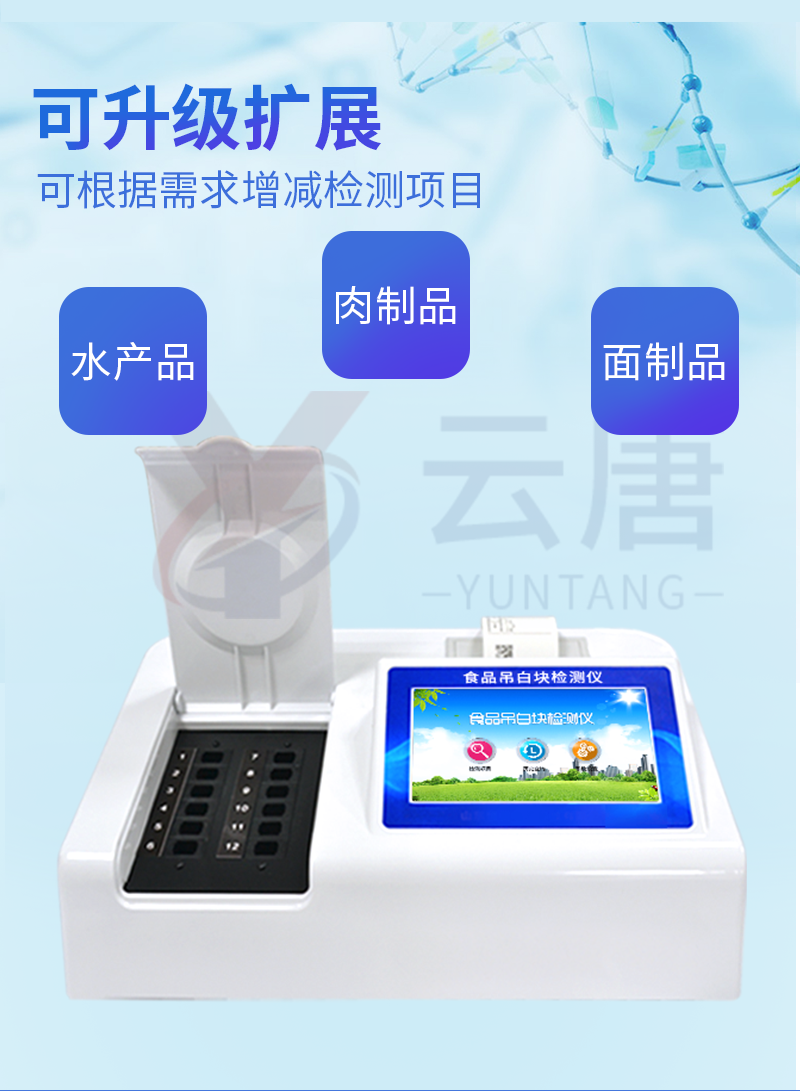 1、 檢測(cè)項(xiàng)目:用于快速檢測(cè)食品中吊白塊,儀器預(yù)留其他項(xiàng)目檢測(cè)程序和端口,根據(jù)日后需求可方便的自主增加檢測(cè)項(xiàng)目。日后可升級(jí)為檢測(cè),水產(chǎn)品,肉制品,面制品的綜合類(lèi)型儀器。
