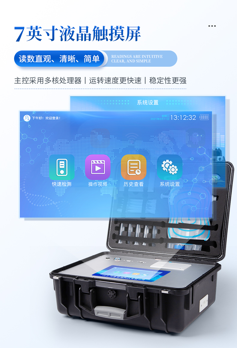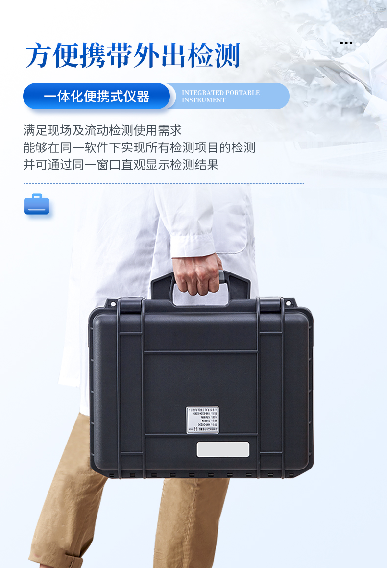 6、一體化便攜式快檢設(shè)備,滿足現(xiàn)場(chǎng)及流動(dòng)檢測(cè)使用需求,能夠在同一軟件下實(shí)現(xiàn)所有檢測(cè)項(xiàng)目的檢測(cè),并可通過(guò)同一窗口直觀顯示檢測(cè)結(jié)果。