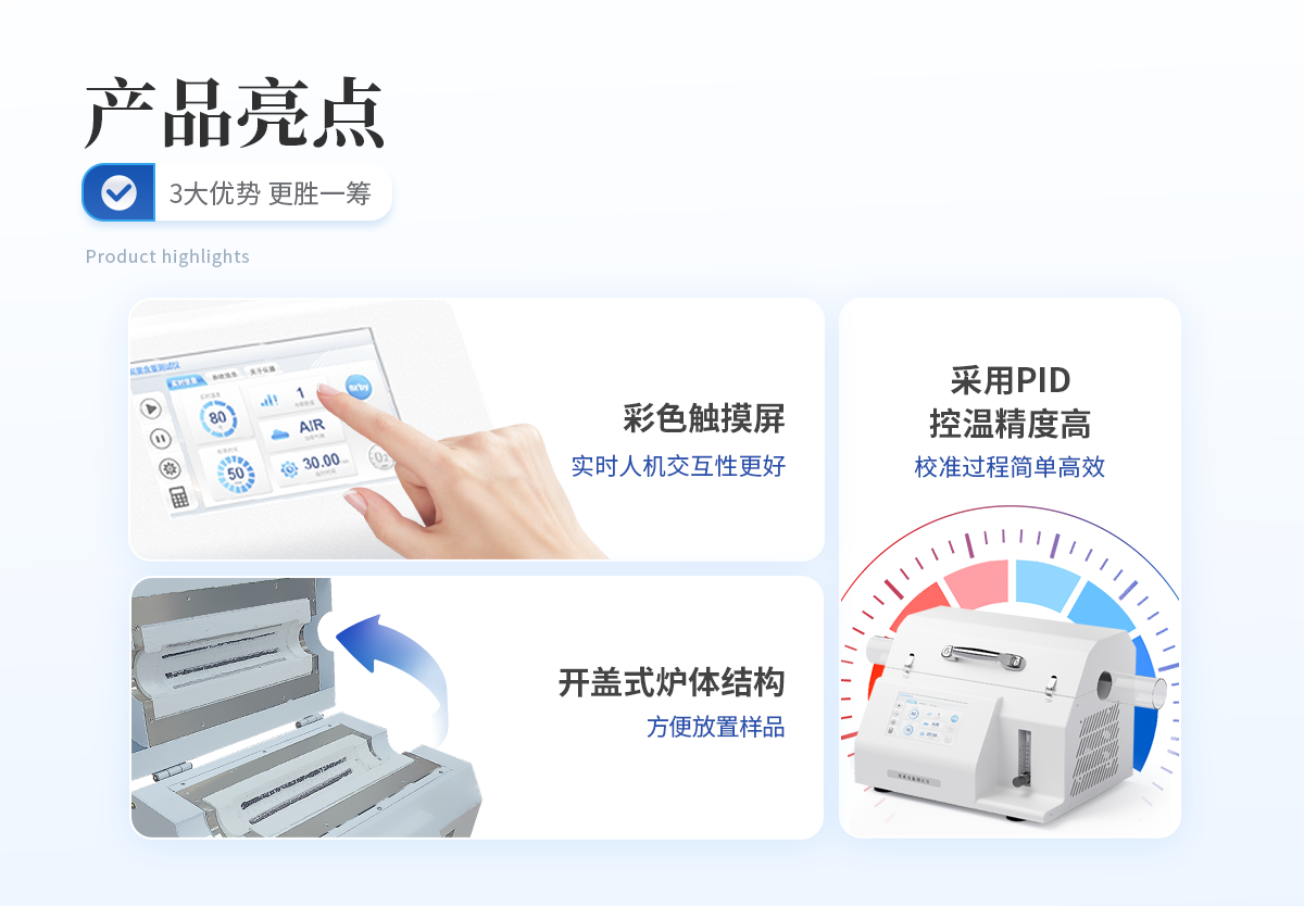 | 1. 采用開蓋式爐體結(jié)構(gòu),方便放置樣品且散熱效果更佳。 | 2. 爐膛采用超長(zhǎng)加熱單元,可同時(shí)測(cè)試4組樣品,大大提高測(cè)試效率。 | 3. 軟件自帶計(jì)算功能,可以一鍵自動(dòng)計(jì)算出炭黑含量、灰分含量,非常得方便快捷。 | 4. 采用PID精準(zhǔn)控溫,控溫精度高,溫度范圍大,爐膛溫度均勻性高。 | 5. 7寸液晶觸摸屏顯示,可一鍵操作啟動(dòng),設(shè)定恒溫時(shí)間,恒溫精度高; | 6. 智能化可編程控制,可設(shè)置多組分段升溫程序。 |