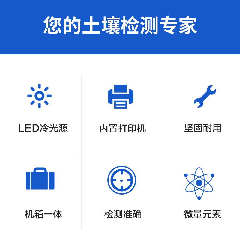 配套齊全:該儀器集藥、器、儀為一體,攜帶方便,相當(dāng)于一個小型實驗室。適于農(nóng)業(yè)服務(wù)部門或農(nóng)資經(jīng)銷商、肥料廠商測土施肥和鑒別肥料真假。