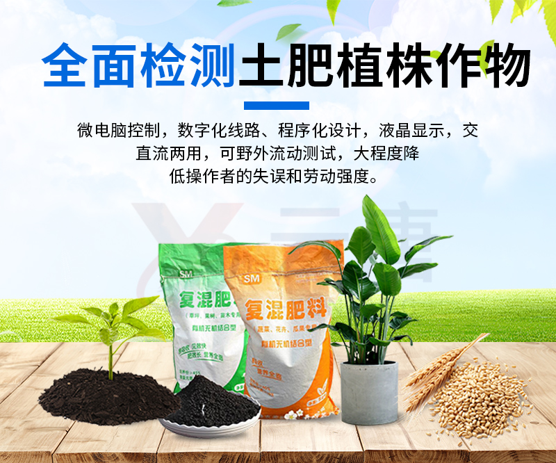 肥料養(yǎng)分:● 單質(zhì)化肥中的氮、磷、鉀; ● 復(fù)(混)合肥及尿素中的銨態(tài)氮、磷、鉀; ● 有機肥中速效氮、速效磷、速效鉀、全氮、全磷、全鉀、pH、有機質(zhì)等。