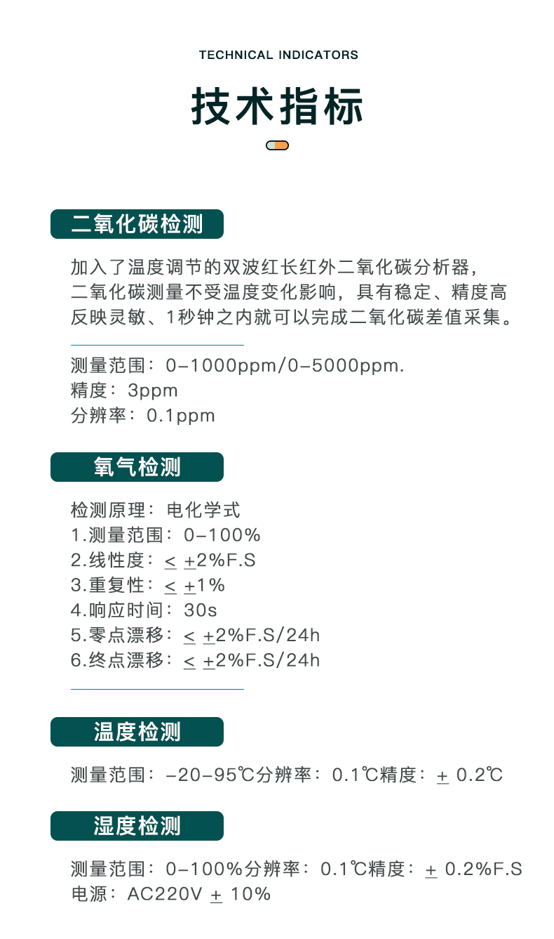 加入了溫度調(diào)節(jié)的雙波長紅外二氧化碳分析器,二氧化碳測量不受溫度變化影響,具有穩(wěn)定、精度高,反映靈敏,1秒鐘之內(nèi)就可以完成二氧化碳差值采集。
